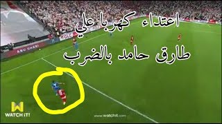 ضرب طارق حامد وكهربا. شن مرتضى منصور رئيس نادي الزمالك هجوما على طارق حامد لاعب الفريق الأول لكرة القدم بالقلعة البيضاء بسبب تجاهل الأخير لرئيس نادية ومدير الكرة والعقود التي وقع عليها مؤخرا. علق طارق حامد لاعب الزمالك علي واقعة مشادته مع محمود كهربا لاعب الأهلي في مباراة السوبر المصري التي اقيمت امس بالإمارات وفاز فيها الأبيض بركلات الجزاء 43 وقال طارق حامد لبعض مشجعي الزمالك في مطار ابو ظبي. مخالفة من لاعب الإنتاج الحربي ضد طارق حامد وأطلق الحكم صافرته معلنا عن مخالفة ولكن طارق حامد قام بضرب لاعب الإنتاج بشكل غير مبرر.